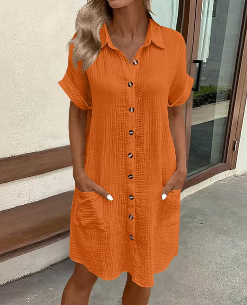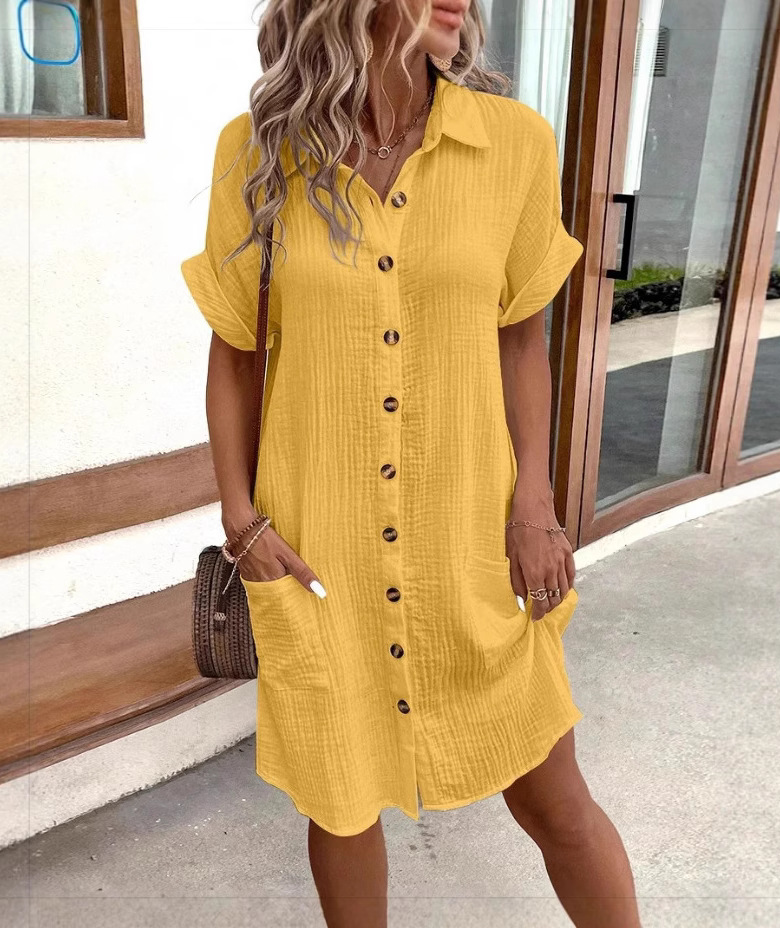 Dame Skjorte Kjole Afslappet Pasform – Sommerkjole med knaplukning og krave er det perfekte basisstykke til afslappet elegance. Med sine rene linjer og det åndbare materiale er den ideel til varme dage eller til at kombinere med din yndlingsjakke.