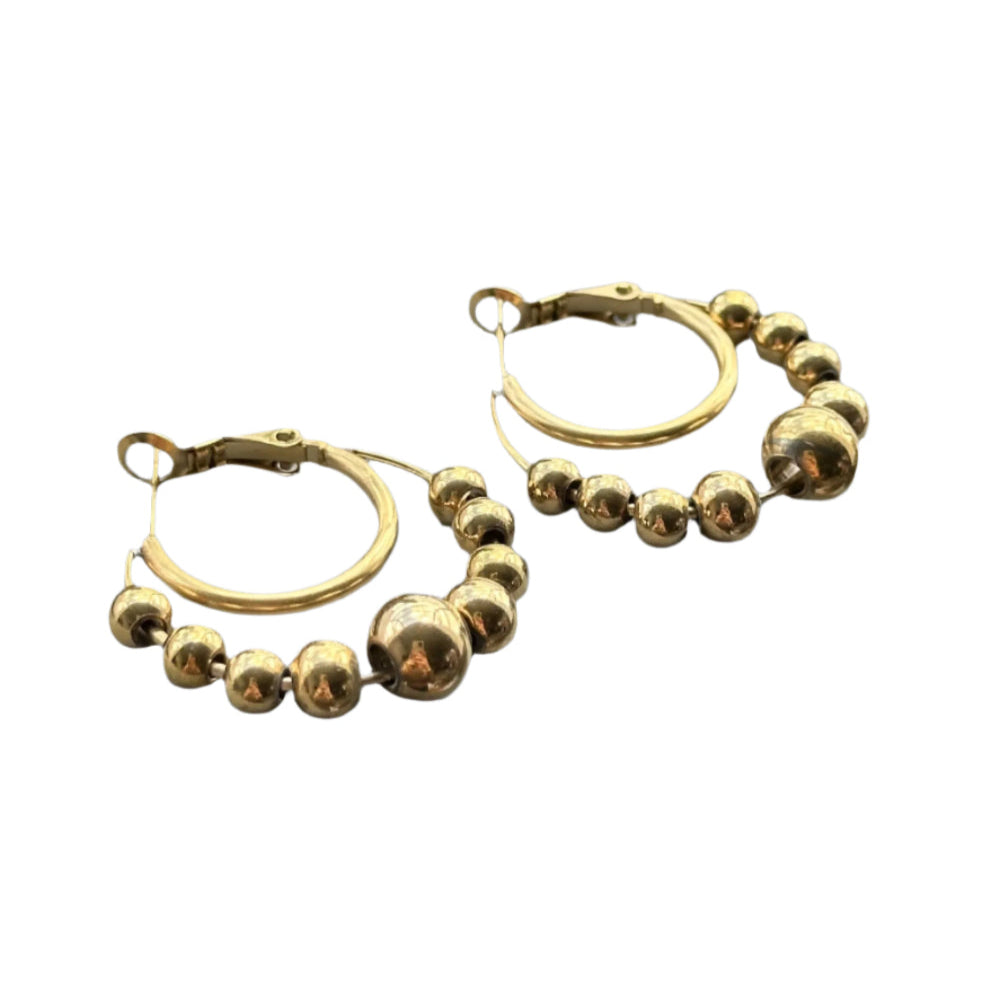 Med Annelise – Guldfarvede perledråbeøreringe løfter du dit tilbehør til et nyt niveau af raffinement. Disse guldfarvede dråbeøreringe har fine perledetaljer, som tilfører et strejf af underspillet glamour – perfekte til både hverdag og særlige lejligheder. Deres flydende form giver bevægelse og blødhed, hvilket gør dem til et alsidigt supplement til enhver smykkesamling.