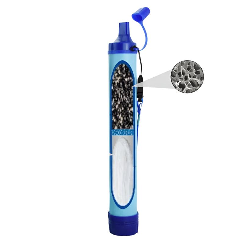 AquaGuard bringer funktionalitet til dine udendørs eventyr og nødsituationer. Designet til nem brug på campingture eller i akutte situationer, giver denne bærbare vandrenser en enkel måde at få renere vand fra naturlige kilder.