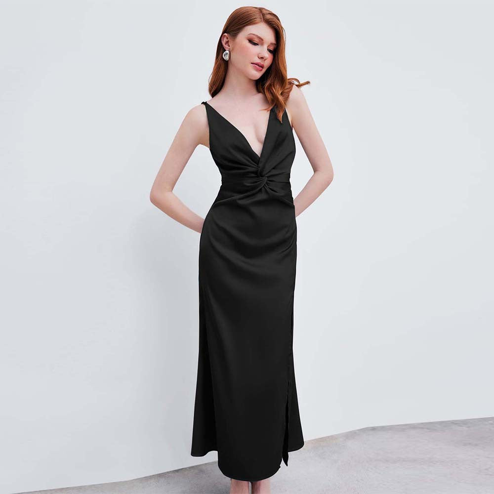 Opdag Astrid – en plisseret maxikjole, der kombinerer klassisk elegance med moderne detaljer. Den flatterende V-udskæring og sideslids fremhæver din silhuet, mens de krydsede stropper bagpå tilføjer et trendy touch. Perfekt til både formelle begivenheder og afslappede sammenkomster, tilbyder Astrid en alsidig stil, der passer til enhver lejlighed.