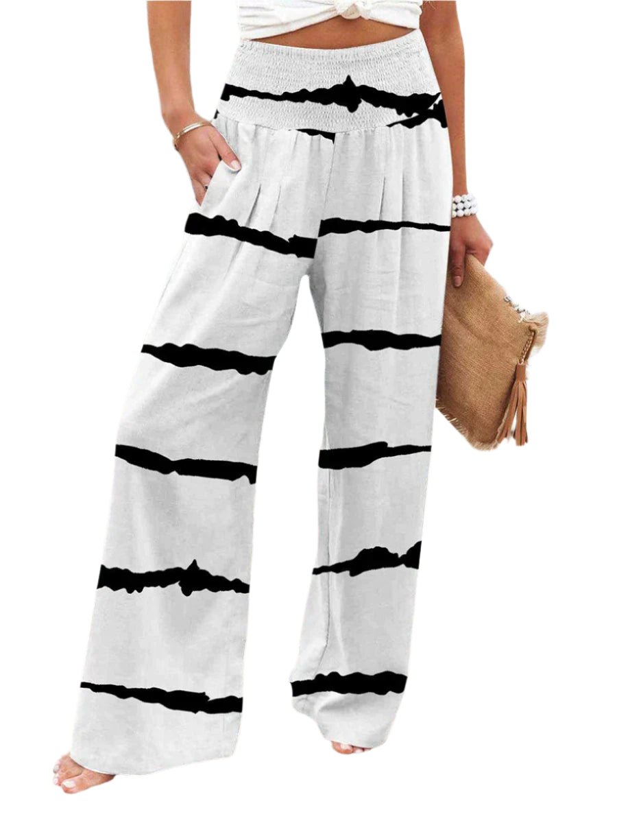 Aunor bukserne forener komfort med personlig stil i et afslappet og moderne design. Vælg mellem et klassisk sort stribemønster eller et livligt solsikkeprint – begge udgaver tilbyder alsidighed og karakter, der passer til alt fra hverdag til weekendudflugter. Den høje talje og elastiske linning sikrer en behagelig pasform hele dagen.