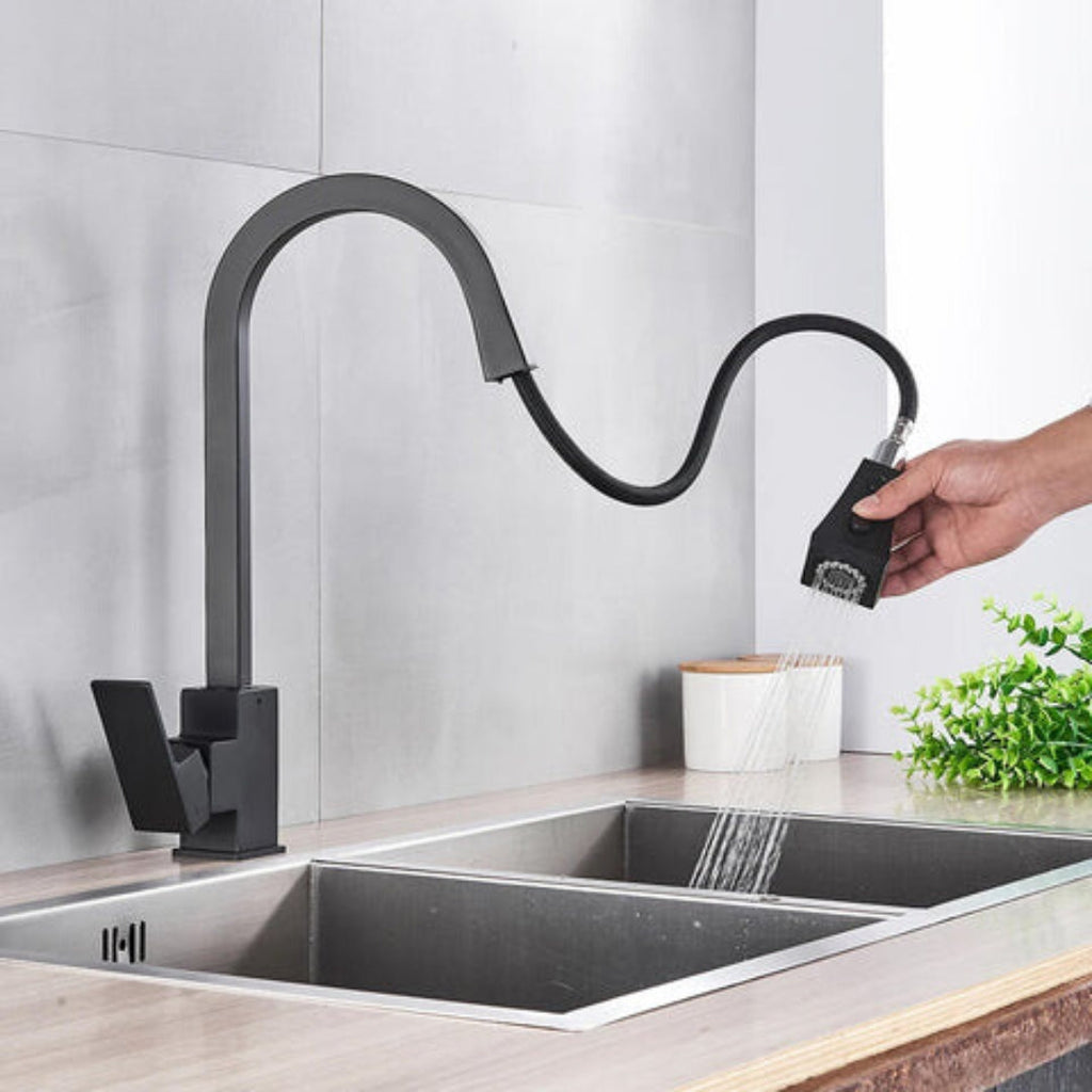 Opgrader dit køkken med BlackMatte Køkkenhane med Pull-Down-sprøjte, der kombinerer moderne design med praktiske funktioner. Dens slanke sorte matte finish tilføjer et sofistikeret touch, mens det forbedrer dit køkkens overordnede æstetik.