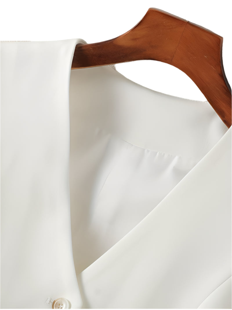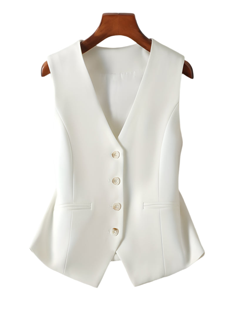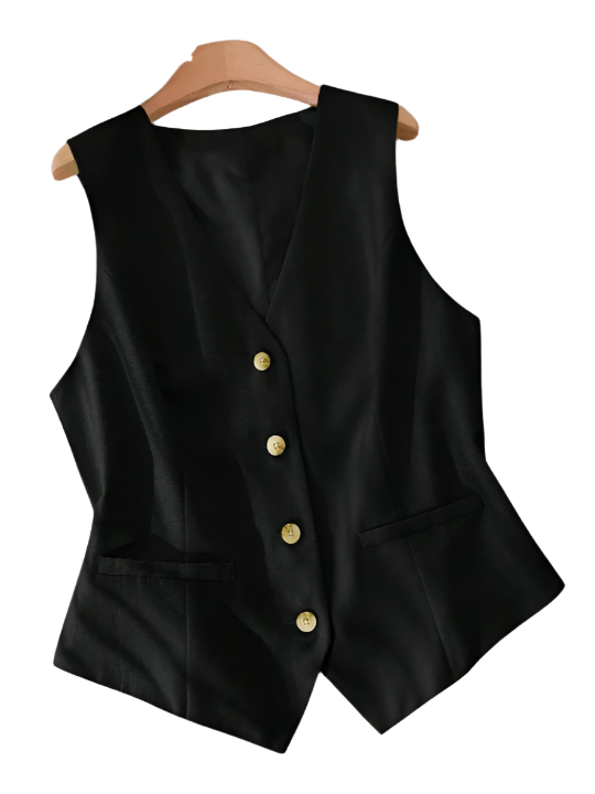 Med Camilla får din garderobe et sofistikeret løft. Denne skræddersyede vest kombinerer skarpe linjer med feminin finesse – perfekt over en skjorte, kjole eller som et stilrent statement i sig selv. Det figursyede snit fremhæver silhuetten, mens det minimalistiske design giver et moderne og selvsikkert udtryk.