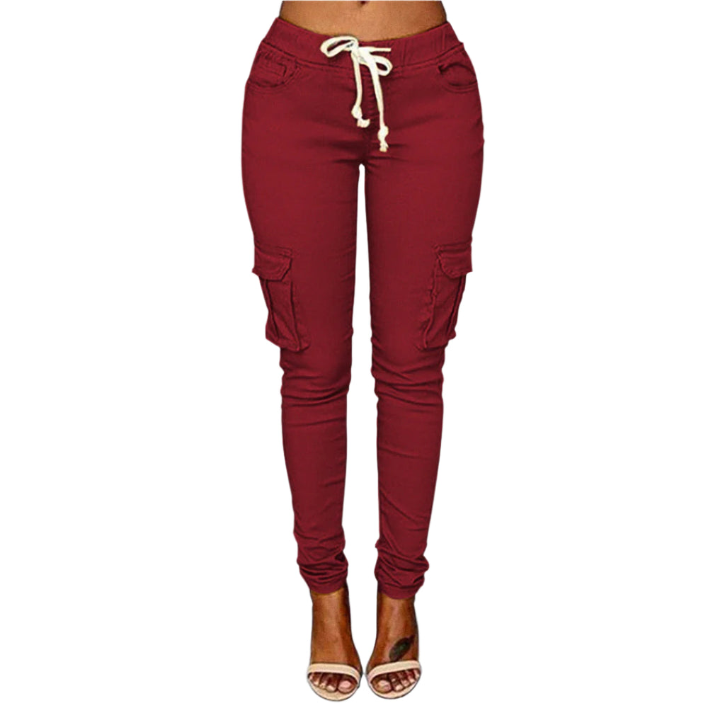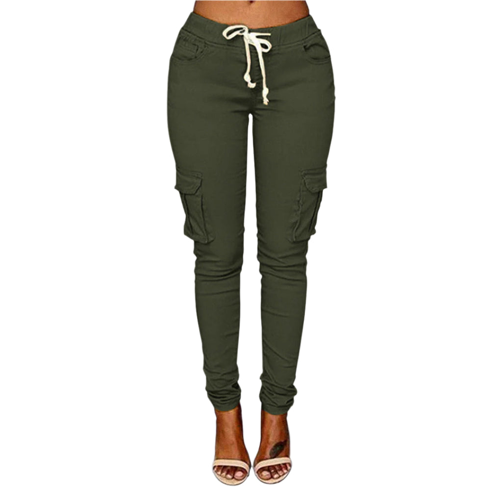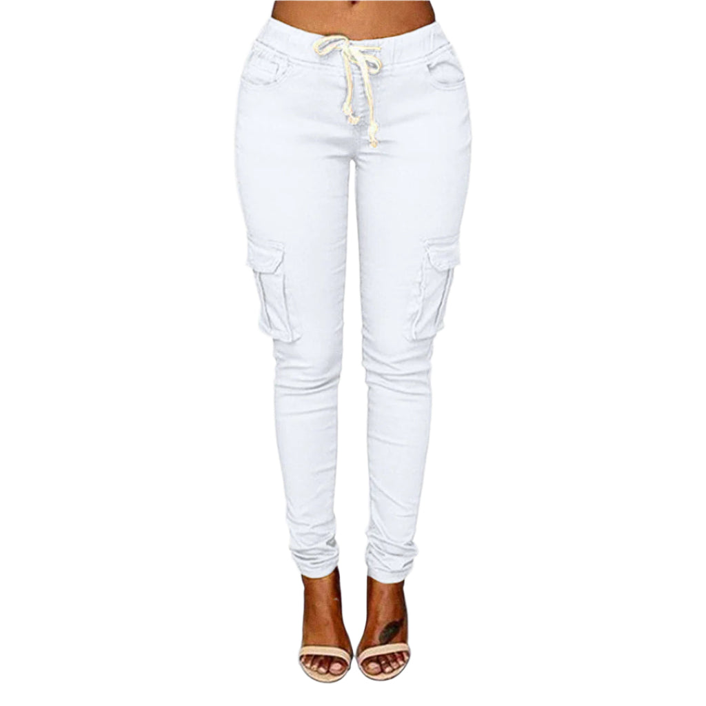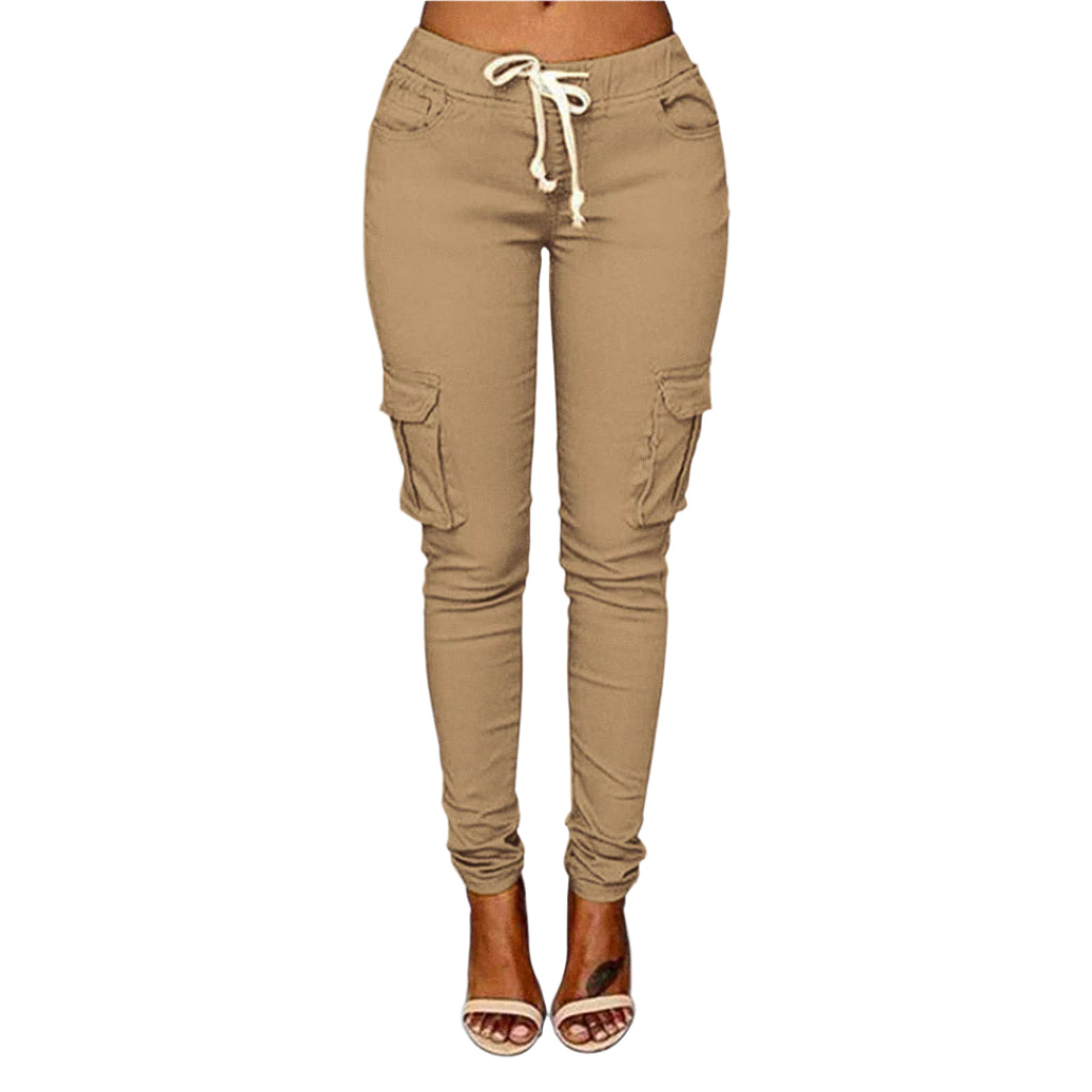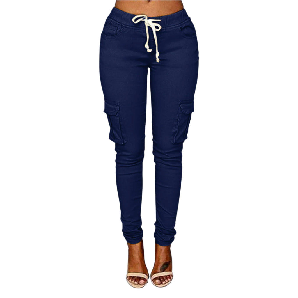 Opdag Claire – de perfekte cargo-bukser til kvinder, der ønsker både stil og komfort. Med en slank pasform, justerbar snøre i taljen og praktiske lommer får du et moderne look med et hint af urban funktionalitet. Ideelle til hverdagsbrug, weekendeventyr eller afslappede dage, hvor du stadig vil se skarp ud.