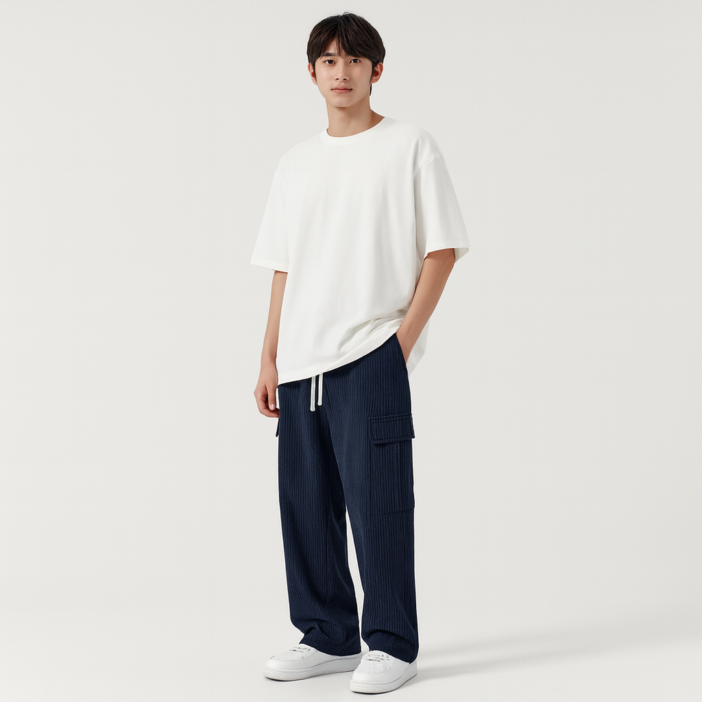 Corven løstsiddende fløjlsbukser kombinerer afslappet elegance med uovertruffen komfort. Bukserne er lavet af højkvalitets fløjl og imponerer med deres bløde tekstur, løse pasform og alsidige design, der perfekt supplerer både afslappede og elegante outfits. Ideel til de køligere årstider, tilfører disse bukser ethvert klædeskab et strejf af tidløs stil.