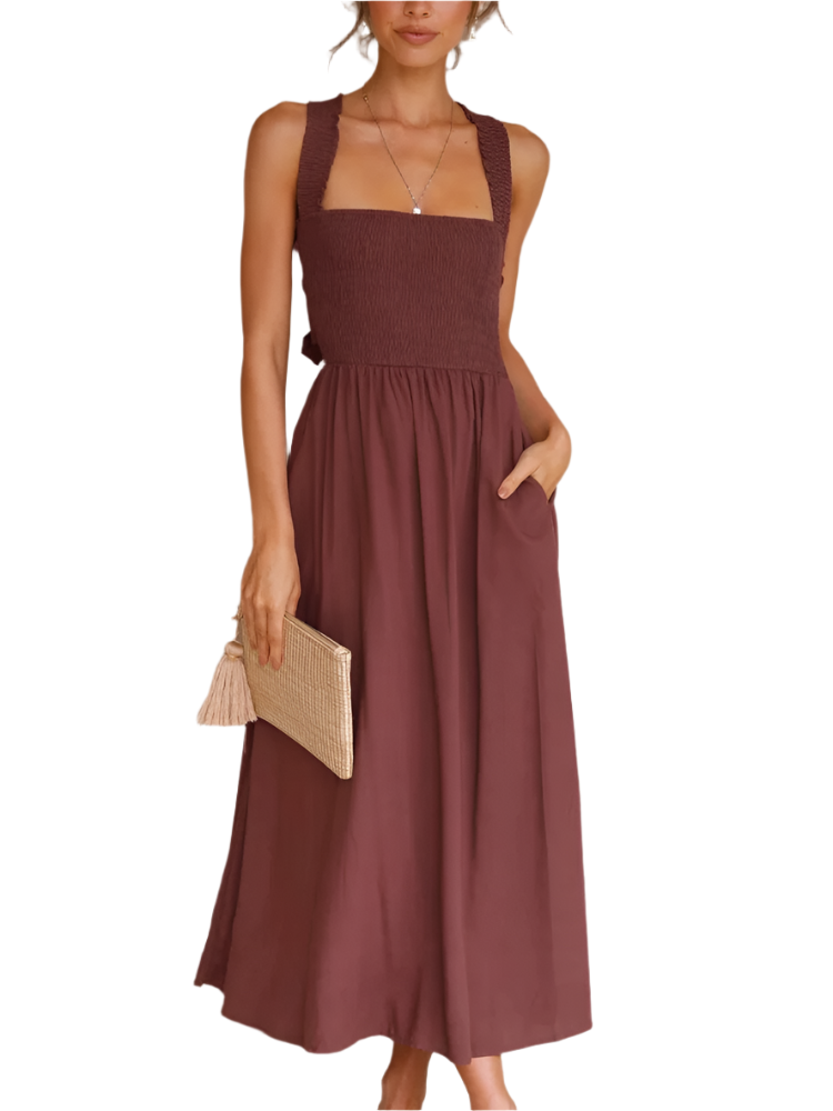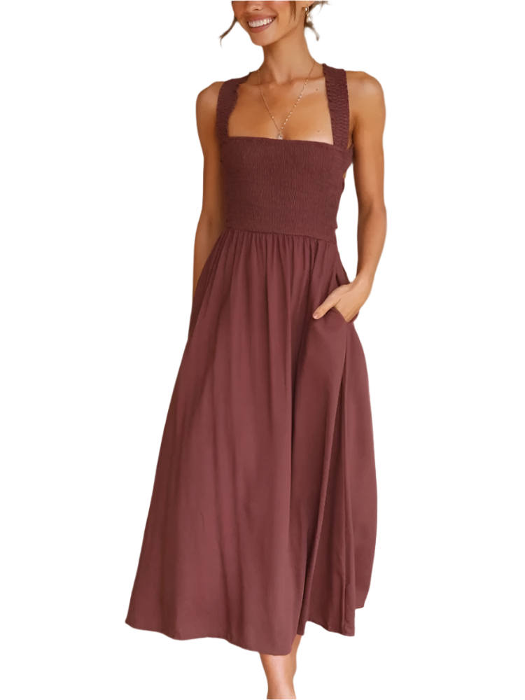 Giv din garderobe et strejf af enkel elegance og funktionalitet med Emma, en ærmeløs kjole designet til komfort og hverdagsbrug. De brede stropper sikrer en behagelig pasform, mens de praktiske lommer tilføjer et brugbart element, der passer til travle dage.