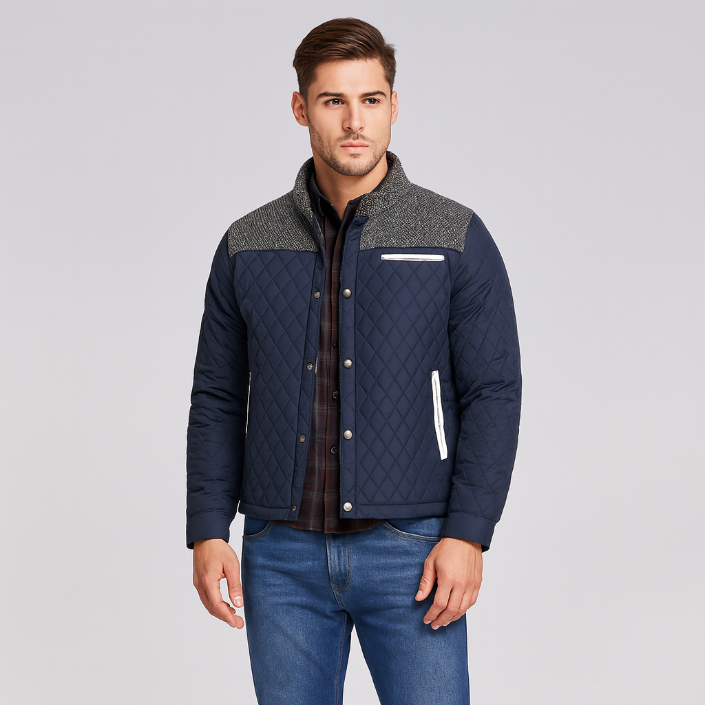 Hold dig varm og elegant med denne quiltede jakke med standkrave. Den er designet til alsidighed og giver et moderne, sofistikeret udtryk, uanset om du er på vej til arbejde, på farten eller nyder afslappede dage i byen.