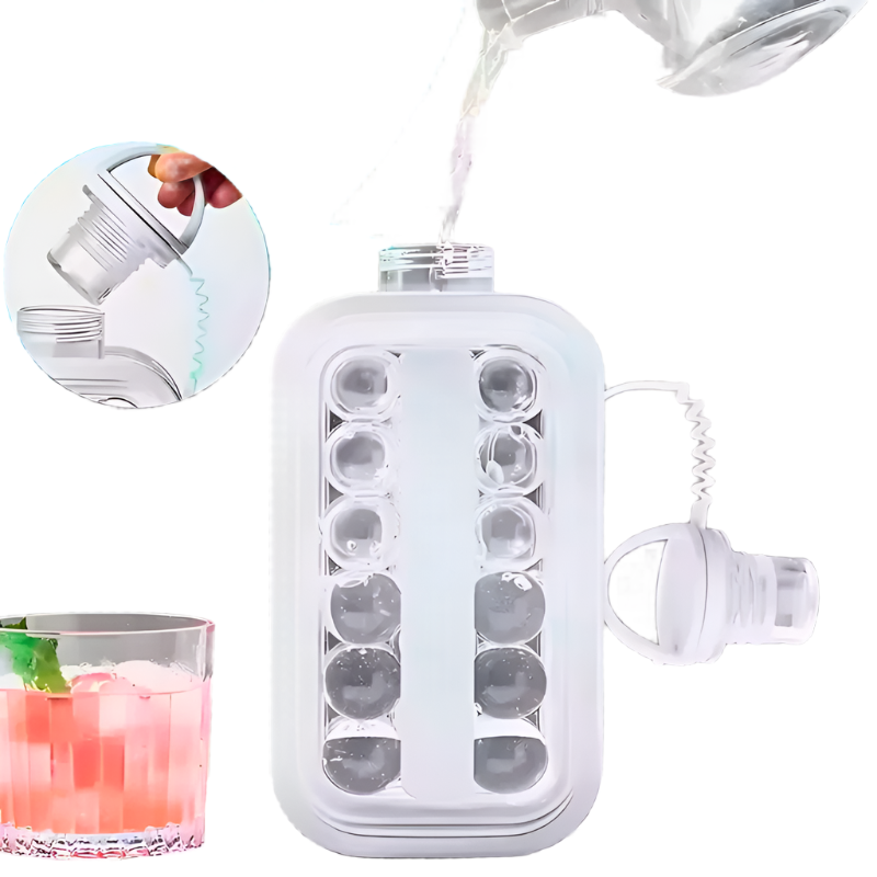 Uanset om det er derhjemme, på farten eller udendørs, bringer den kompakte FrostGlobe isterningflaske enkelhed og elegance til din drikkeoplevelse. Designet til nemt at lave sfæriske isterninger, kombinerer den praktisk funktion med et moderne udtryk.