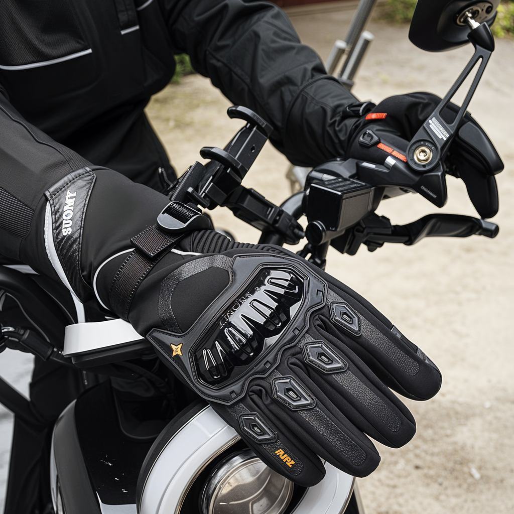 FrostShield Moto-handsker til vinterbrug giver dig den perfekte kombination af varme og sikkerhed. Disse CE 2KP-certificerede handsker er skabt til at beskytte dig under krævende vinterforhold.