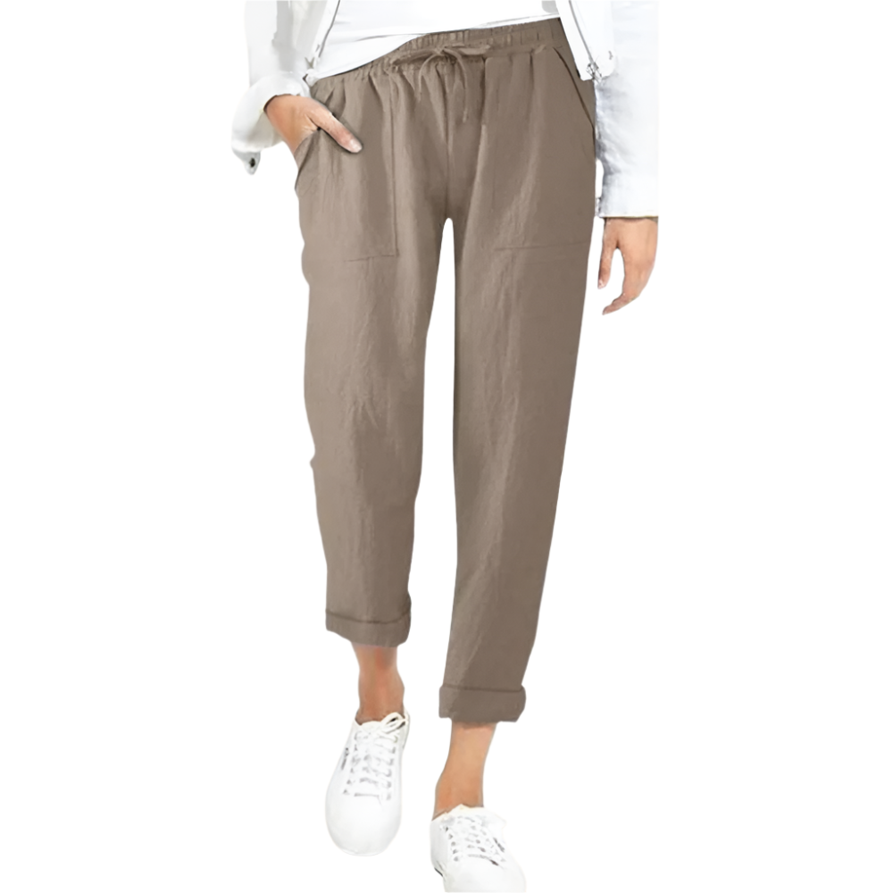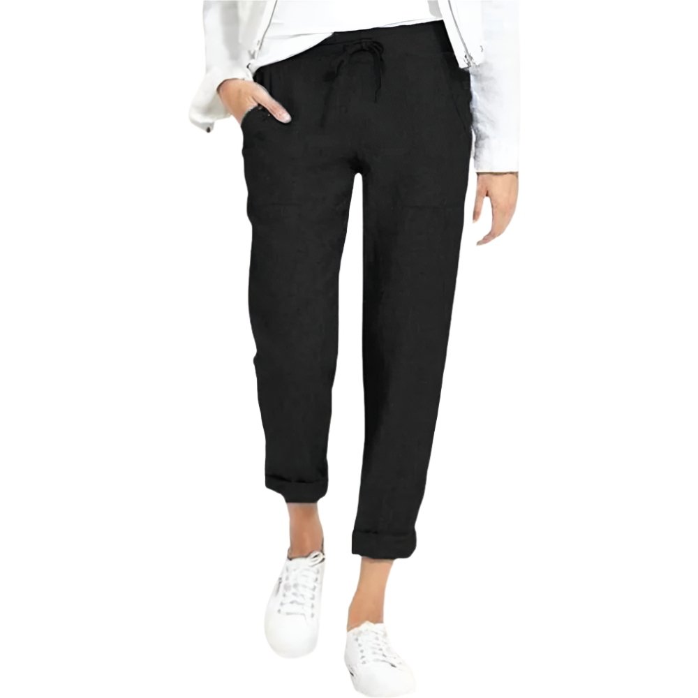 Gea - Drift Bukser Med Snøre tilføjer et afslappet, men alligevel raffineret udtryk til din garderobe. Med en justerbar snøre i taljen giver disse bukser en personlig pasform samtidig med, at de bevarer en ren silhuet. Det bløde materiale og den afslappede pasform gør dem alsidige til hverdagsbrug med et moderne touch.