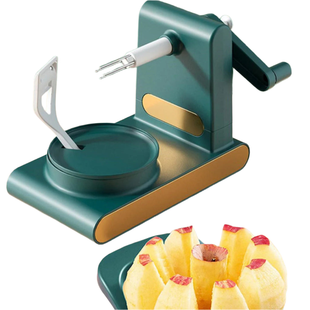 GreenCrank æbleskrælleren gør madlavningen nemmere og sjovere. Med sit praktiske drejehåndtag og iøjnefaldende farvekombination af mørkegrøn, lysegrøn og gul, bringer den både funktionalitet og glæde ind på køkkenbordet. Skær, skræl og udstik dine æbler – alt i én glidende bevægelse.