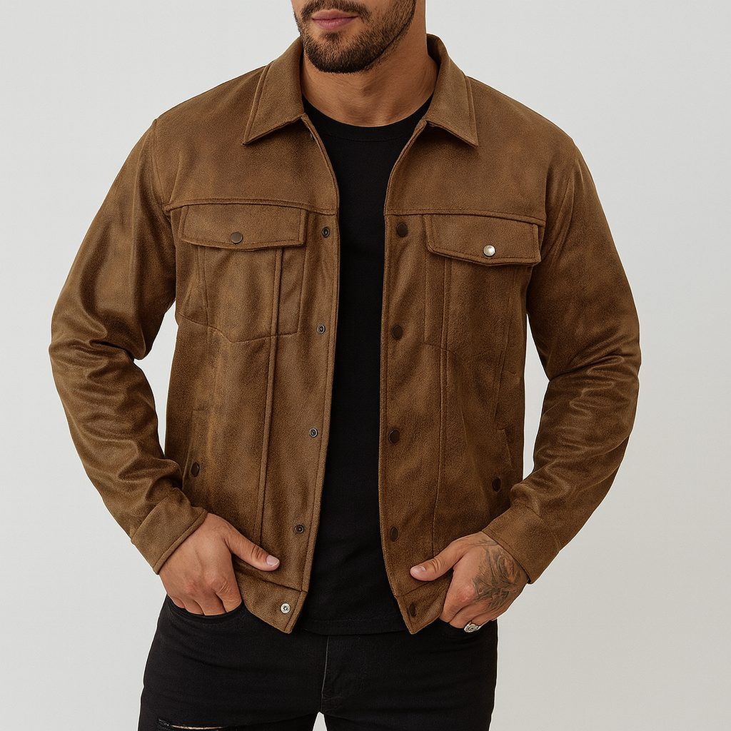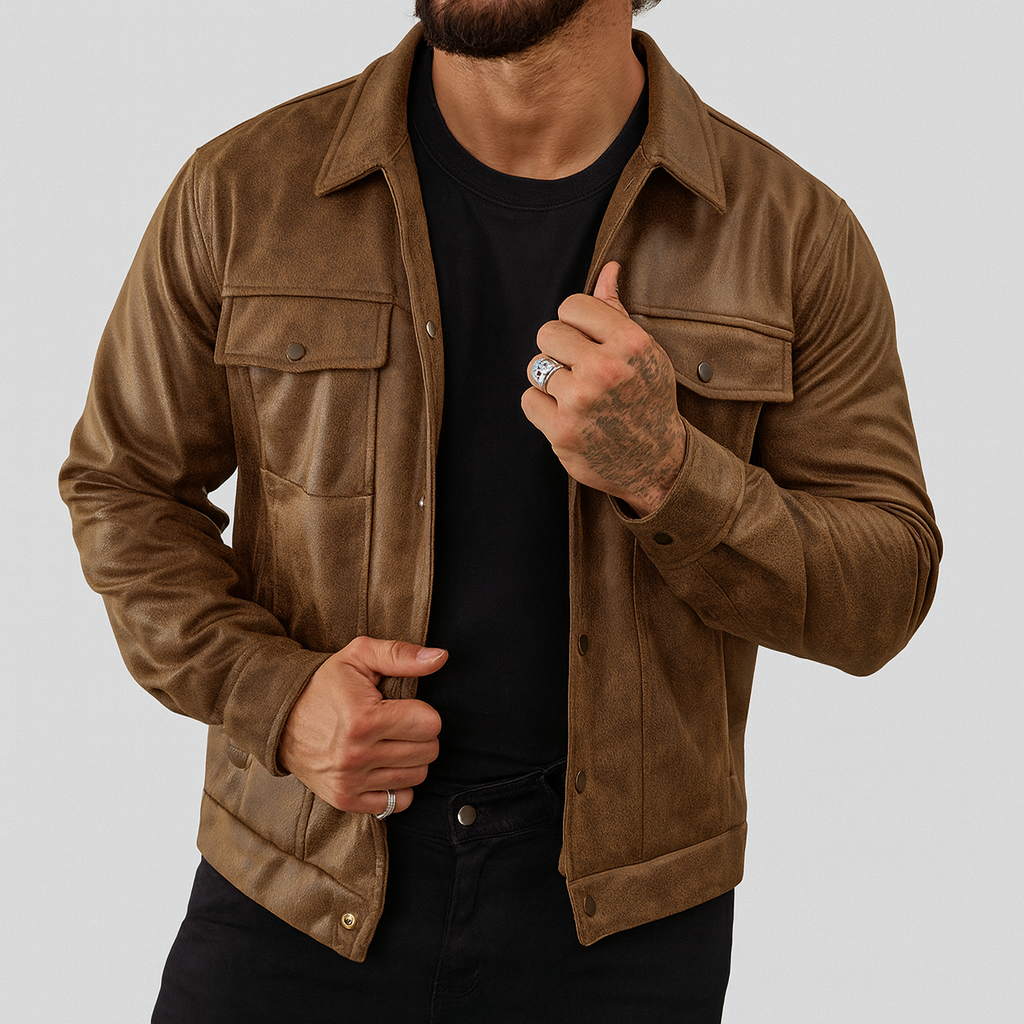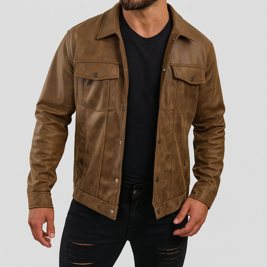 Fremstillet af høj kvalitet vegansk læder, tilbyder denne jakke det samme udseende og følelse som ægte læder, men med en etisk kant. Med en komfortabel pasform, holdbar syning og funktionelle lommer, blander den problemfrit praktisk med stil.