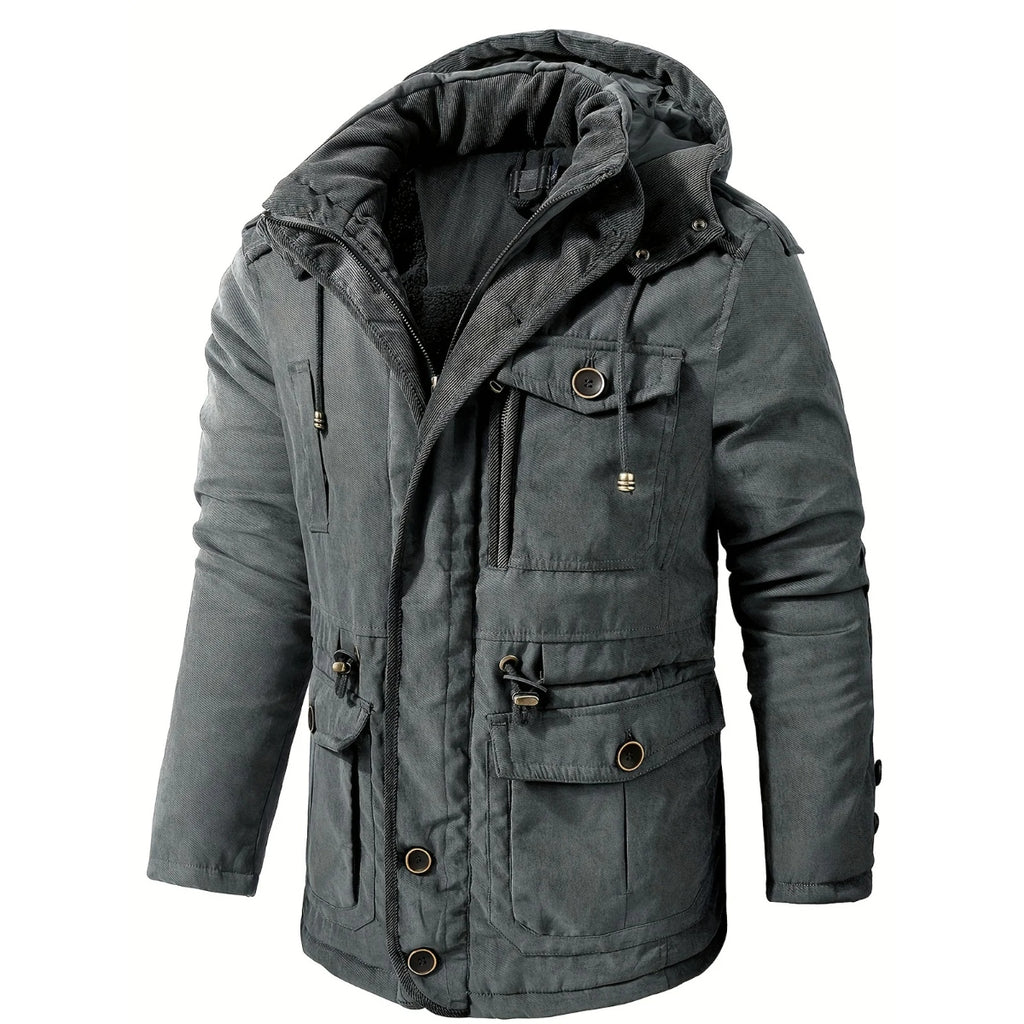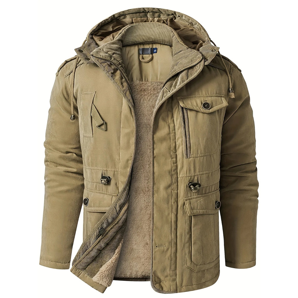 Denne casual chic cargojack har en robust konstruktion med en hyggelig hætte, der er perfekt til at beskytte dig mod elementerne.