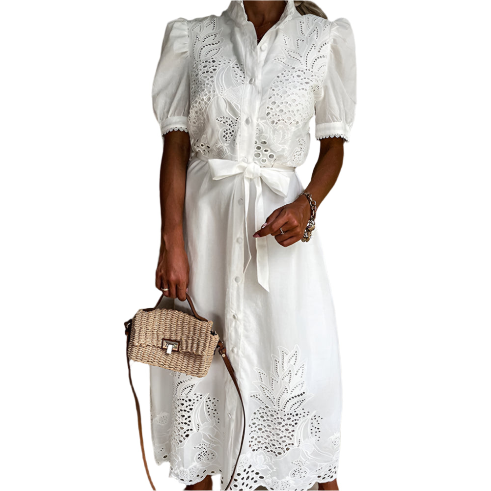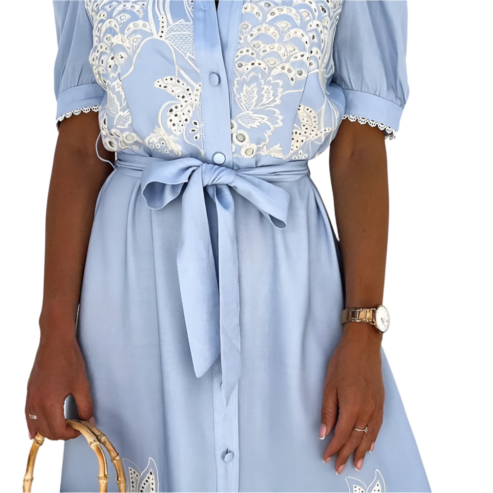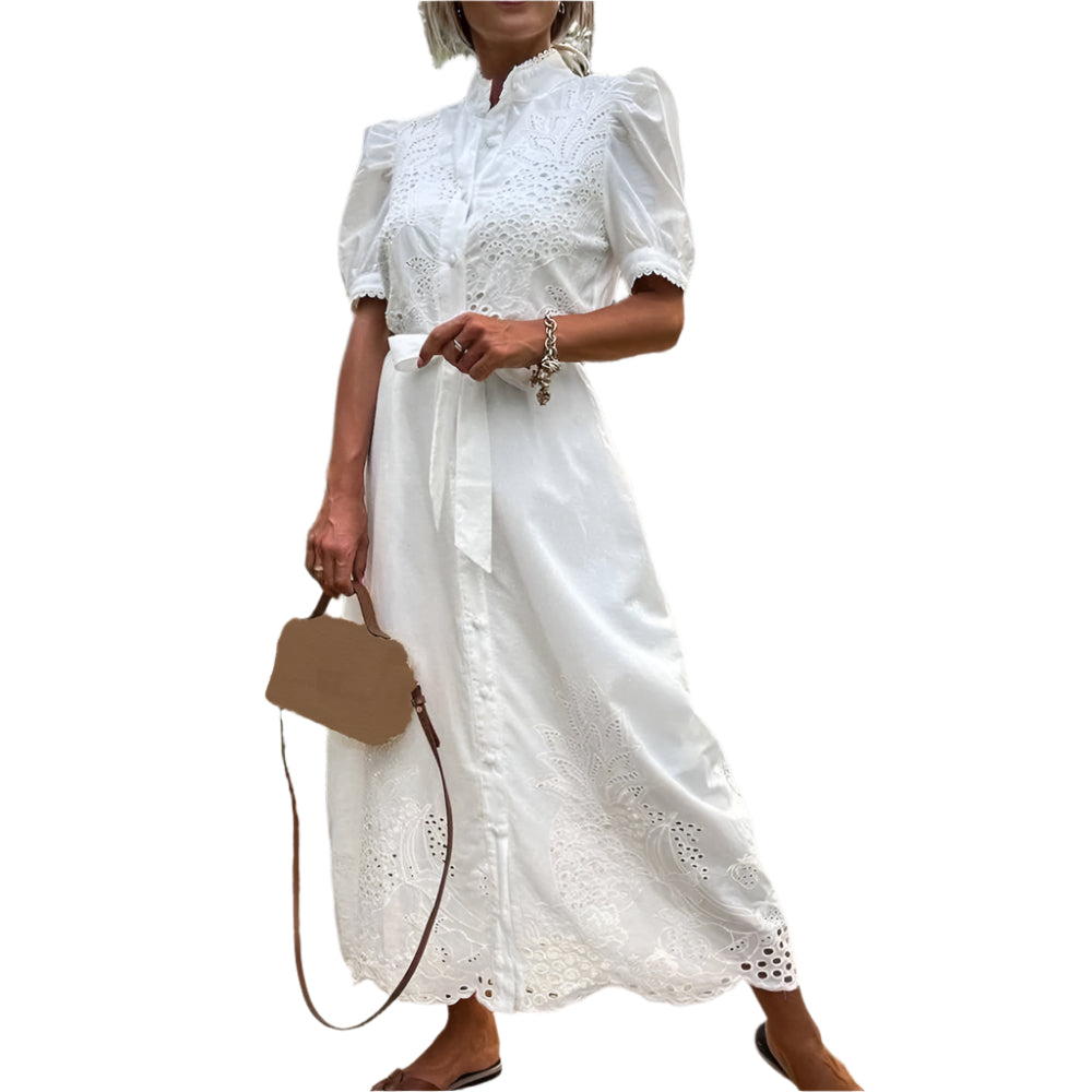 Med Josefine, en elegant kjole med ballonærmer og delikat blondekant, får din garderobe et raffineret og feminint touch. Den bløde silhuet og de fine detaljer skaber et ubesværet stilfuldt outfit, der passer til mange forskellige lejligheder.
