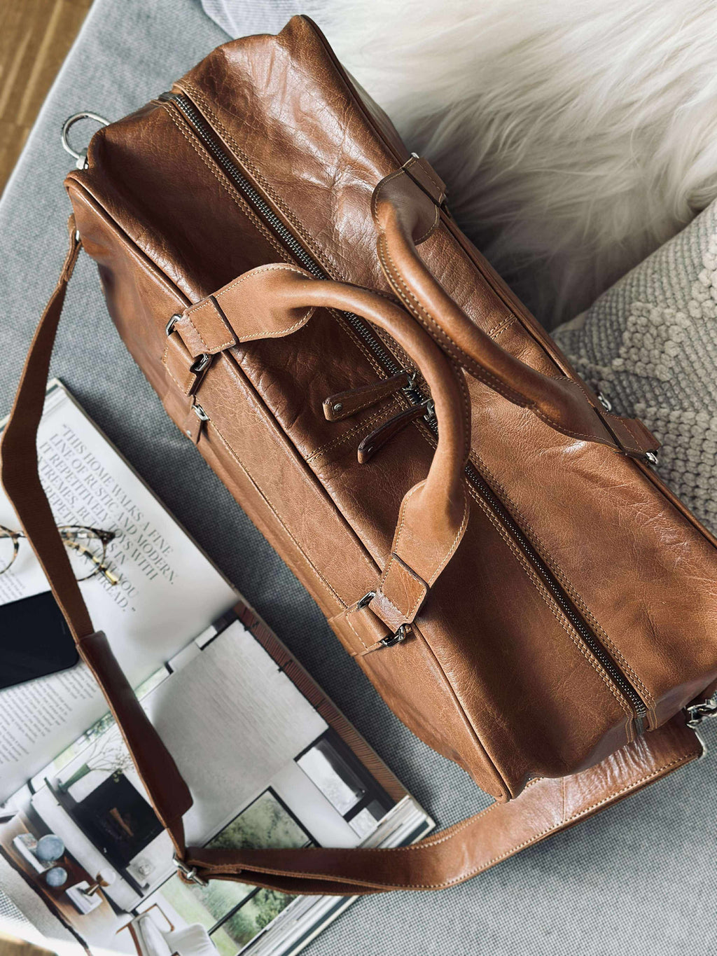 Juliane læderrejsetaske forener klassisk elegance med funktionelt design, hvilket gør den til det ideelle valg til weekendture og spontane rejser. Fremstillet af førsteklasses læder tilbyder Juliane både stil og praktisk anvendelighed, uanset hvor din rejse fører dig hen.