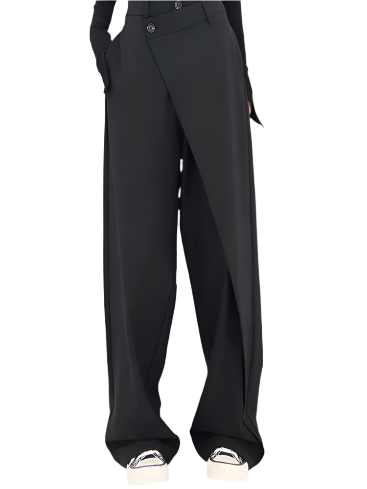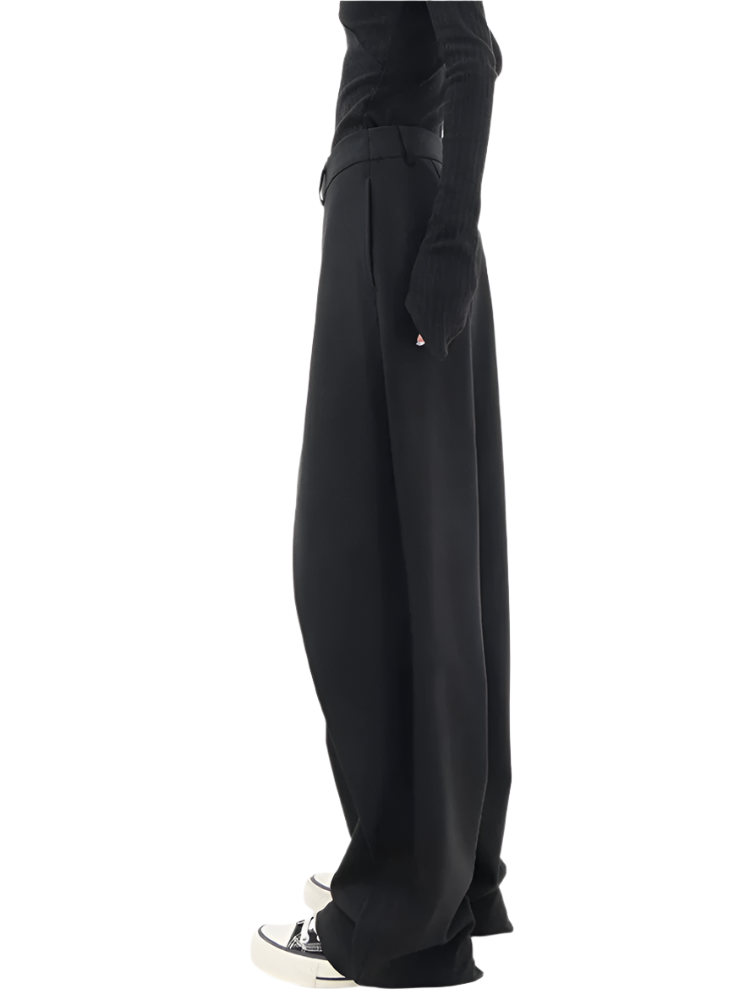 Med Karla får din garderobe et par bukser, der er designet til både komfort og alsidighed. Den høje talje fremhæver en flatterende silhuet, mens den løse pasform og vide ben giver fuld bevægelsesfrihed og en afslappet følelse. Uanset om de matches med afslappede toppe eller mere strukturerede items, tilfører disse bukser en moderne, underspillet elegance til ethvert outfit.