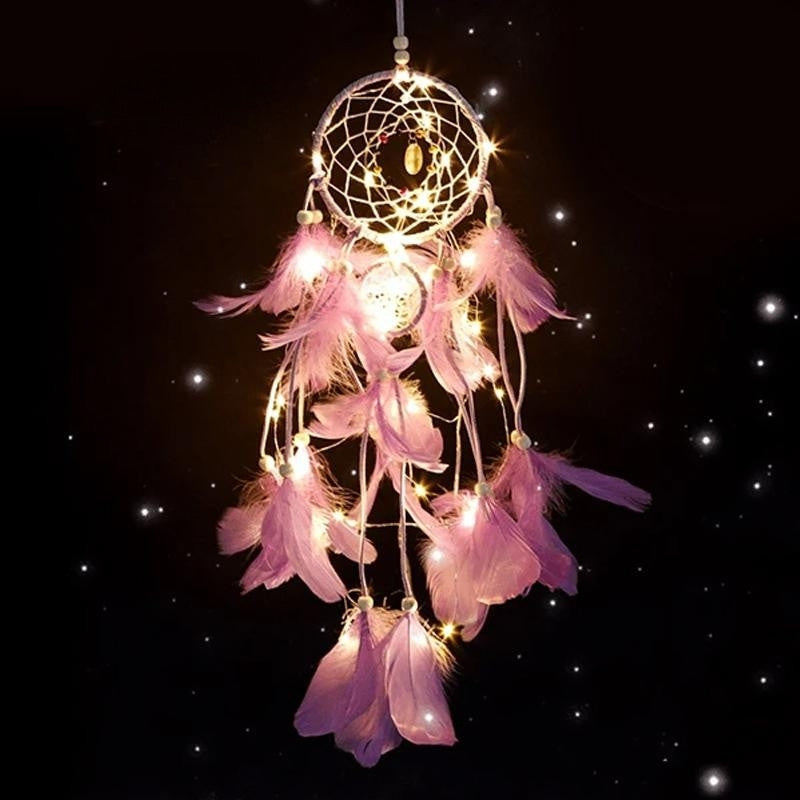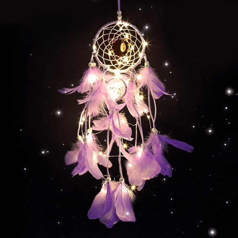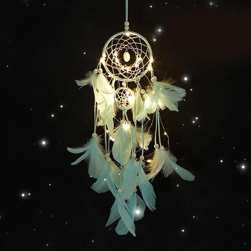 Denne smukt designede drømmefanger kombinerer traditionel symbolik med moderne LED-belysning, hvilket gør den til en elegant dekoration både dag og nat. Perfekt som gave eller som en personlig detalje i din indretning.