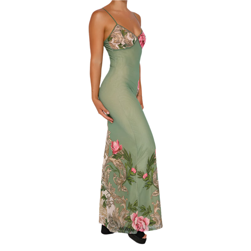 Med Mathilde får din garderobe et statement-piece, der føles ubesværet elegant. Den kropsnære pasform fremhæver silhuetten, mens de fine spaghetti-stropper og den lange maxilængde skaber et yndefuldt og flydende udtryk. Et blødt blomsterprint tilfører et romantisk præg og gør kjolen velegnet til både afslappede sammenkomster og mere formelle lejligheder.
