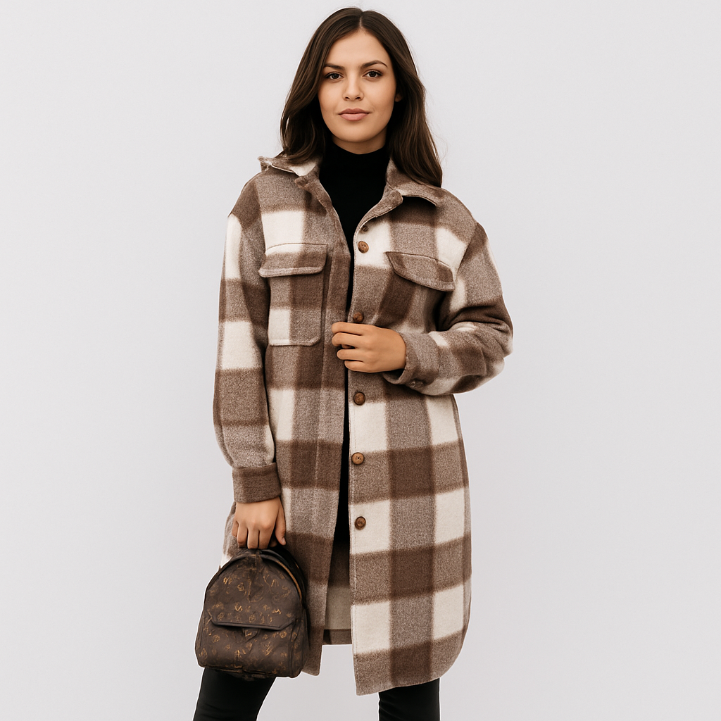Det tidløse ternede mønster giver stil og struktur. Knaplukning gør det nemt at tage jakken af og på. Praktiske lommer giver plads til de vigtigste ting. Ideel til efterår, vinter og overgangsperioder – udendørs, alene eller med lag-på-lag.