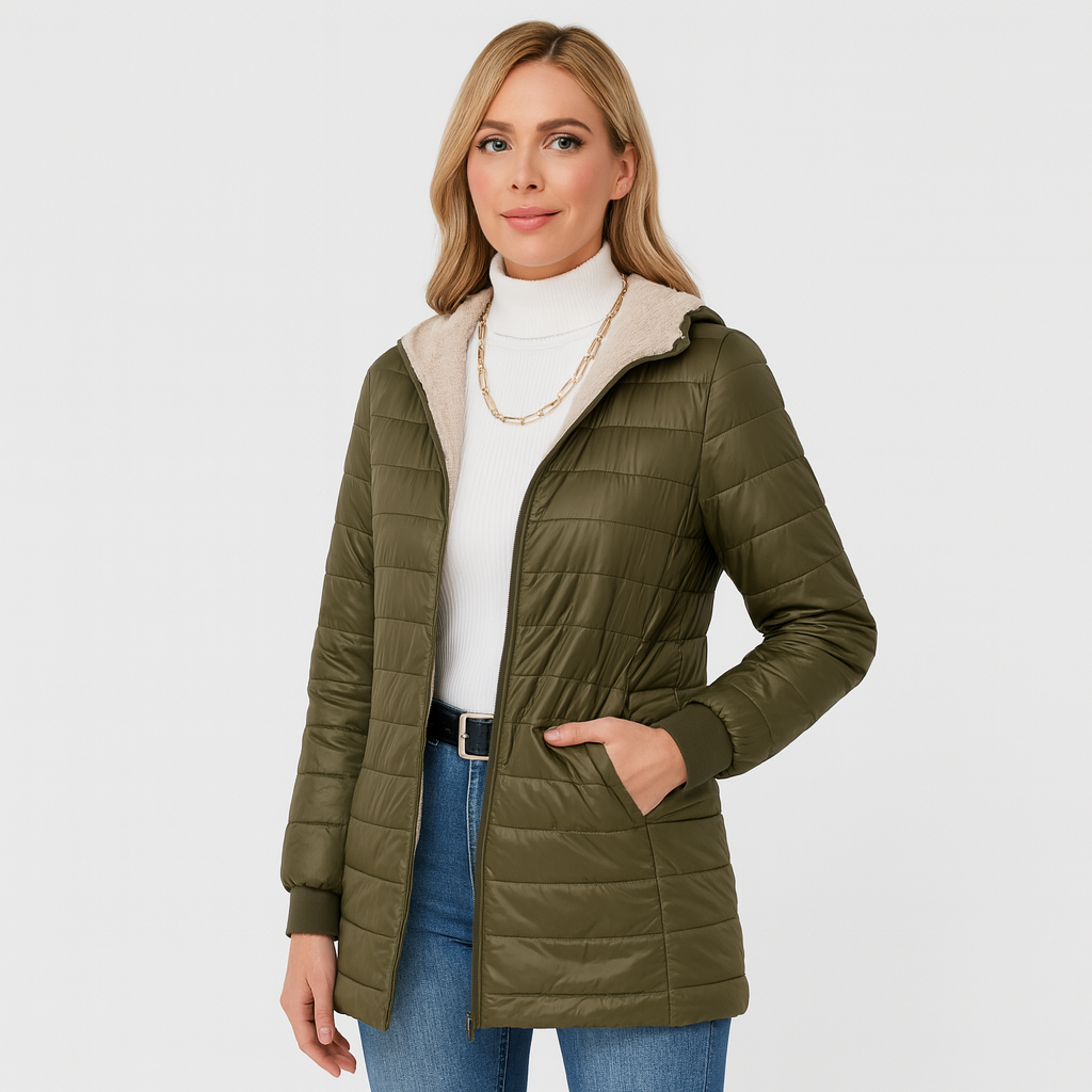 Denne vinterfrakke holder dig behageligt varm og giver samtidig maksimal komfort. Den løse pasform og det bløde fleecefor gør den ideel til hverdagsbrug og vintergåture.