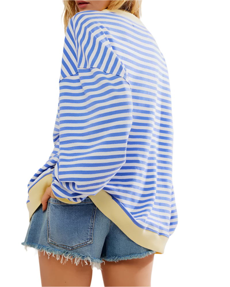 Tilføj et strejf af ubesværet cool til din hverdagsstil med Osanna – en hyggelig, oversized striktrøje designet til komfort og alsidighed. Med sine brede horisontale striber, klassiske rund hals og løse pasform er den ideel til både afslapning og hverdagsbrug.