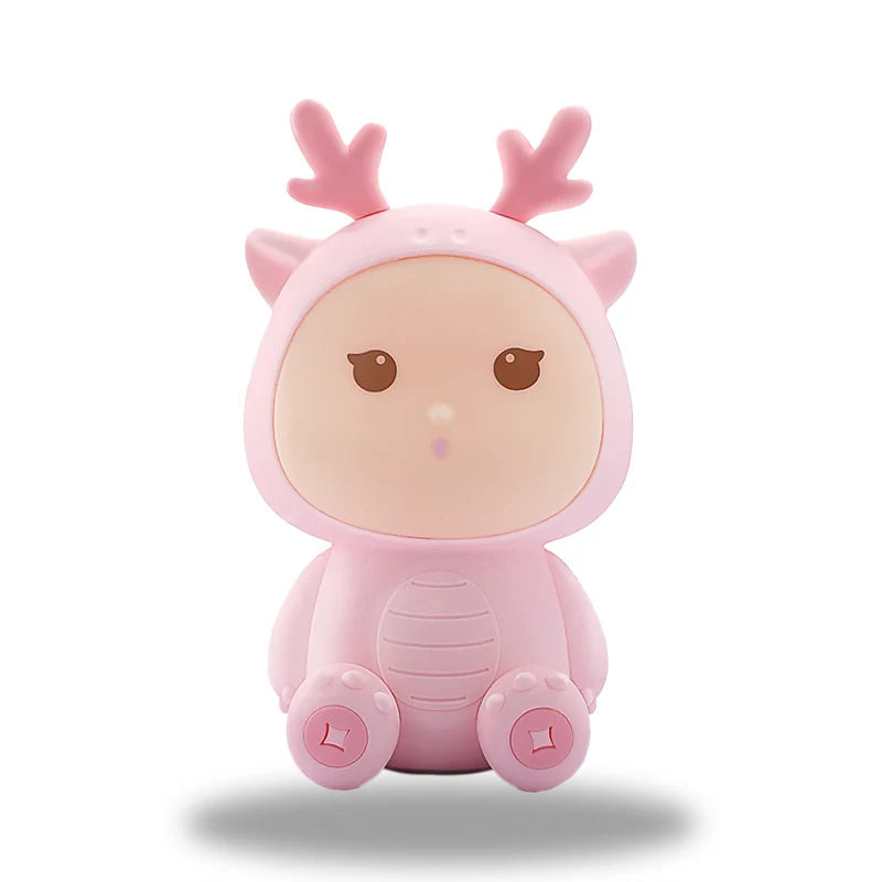 Bring et strejf af lune og varme til dit barns værelse med ReindeerGlow Night Lamp. Designet som et sødt rensdyr i siddende stilling giver denne lampe et blidt og beroligende lys, perfekt til godnathistorier og fredelig søvn.