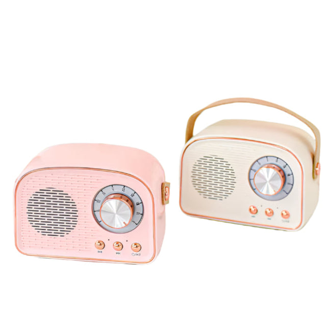 Med RetroCharm - Moderne Bluetooth-højttaler får du den perfekte fusion af nostalgi og nutidig funktionalitet. Højttaleren bringer charme og karakter til ethvert rum med sit ikoniske retrodesign, mens den kraftfulde lyd og trådløse teknologi sikrer en moderne lytteoplevelse. Uanset om du er hjemme eller på farten, gør det praktiske håndtag det nemt at tage musikken med dig.