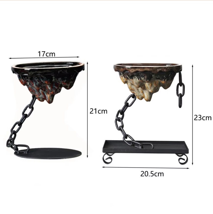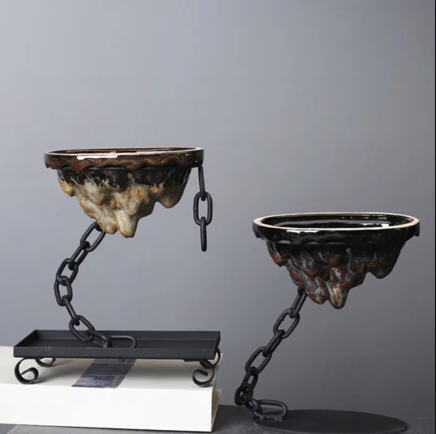 Disse plantekasser er ophængt af en robust metalkæde og base og er perfekte til at fremvise planter, sukkulenter eller dekorative accenter. Uanset om det er indendørs eller udendørs, skaber de et visuelt fantastisk fokuspunkt.