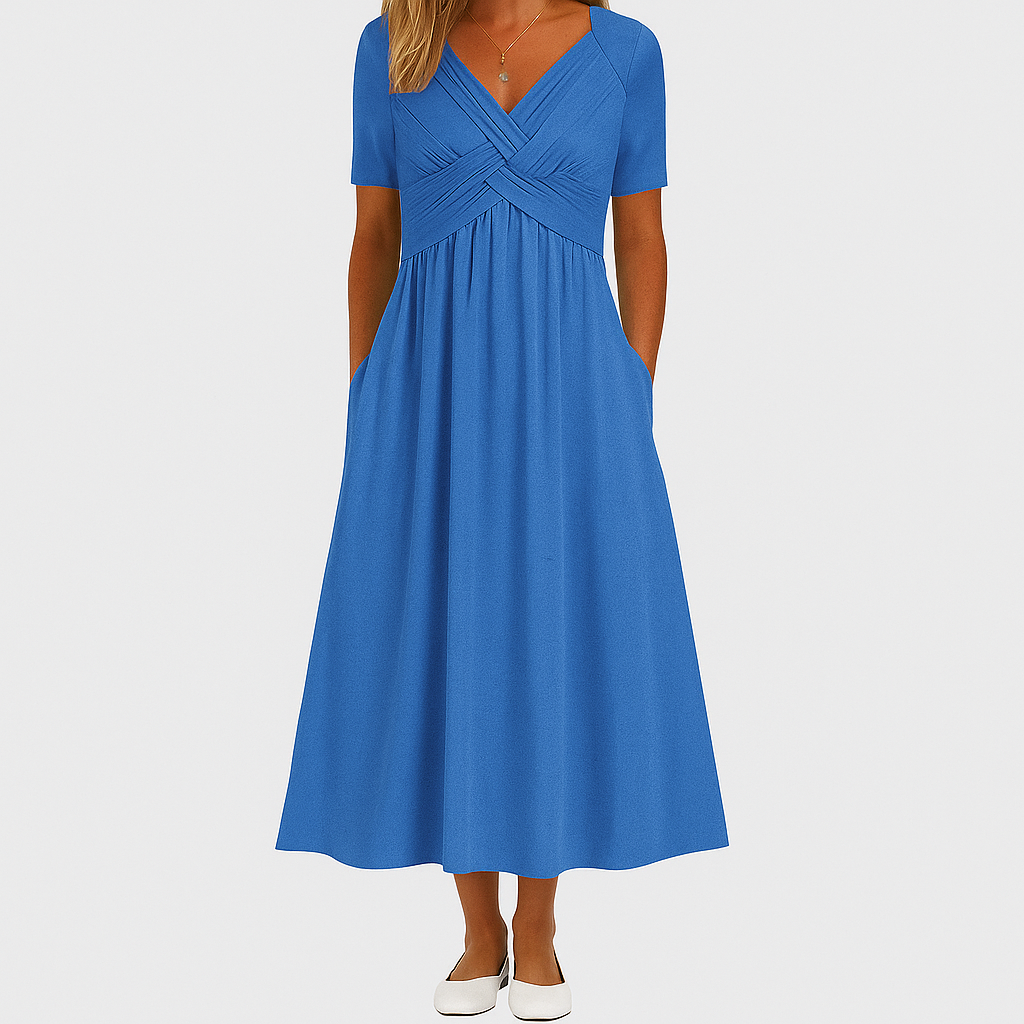Sofie Casual Maxikjole kombinerer et afslappet design med fine detaljer, der giver et feminint og elegant look. Den løse pasform sikrer komfort hele dagen, mens knapdetaljerne tilfører et moderne touch. Perfekt til både hverdagsbrug og sommerudflugter.