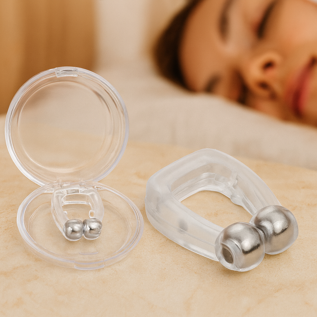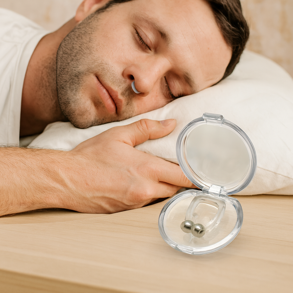 Sig farvel til urolige nætter med SomnoEase's magnetiske næseclips. Den reducerer snorken behageligt og effektivt. Denne innovative enhed er let, skånsom mod huden og forbedrer luftcirkulationen for en rolig og uforstyrret søvn. Nyd afslappende nætter og vågn op frisk og fuld af energi.