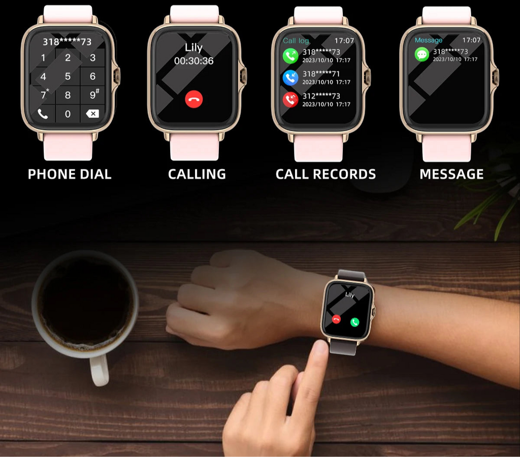 Dette smarte ur kombinerer avanceret teknologi med en elegant og funktionel design. Det giver mulighed for at besvare opkald, modtage beskeder og overvåge din søvn, så du kan holde styr på både dit helbred og dine daglige aktiviteter.