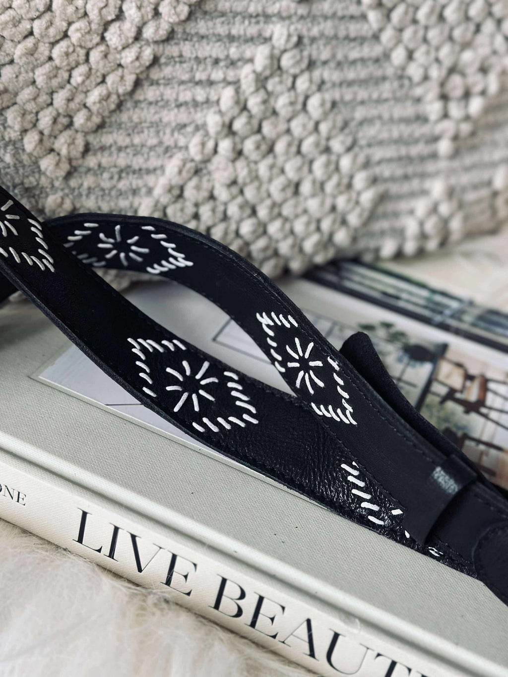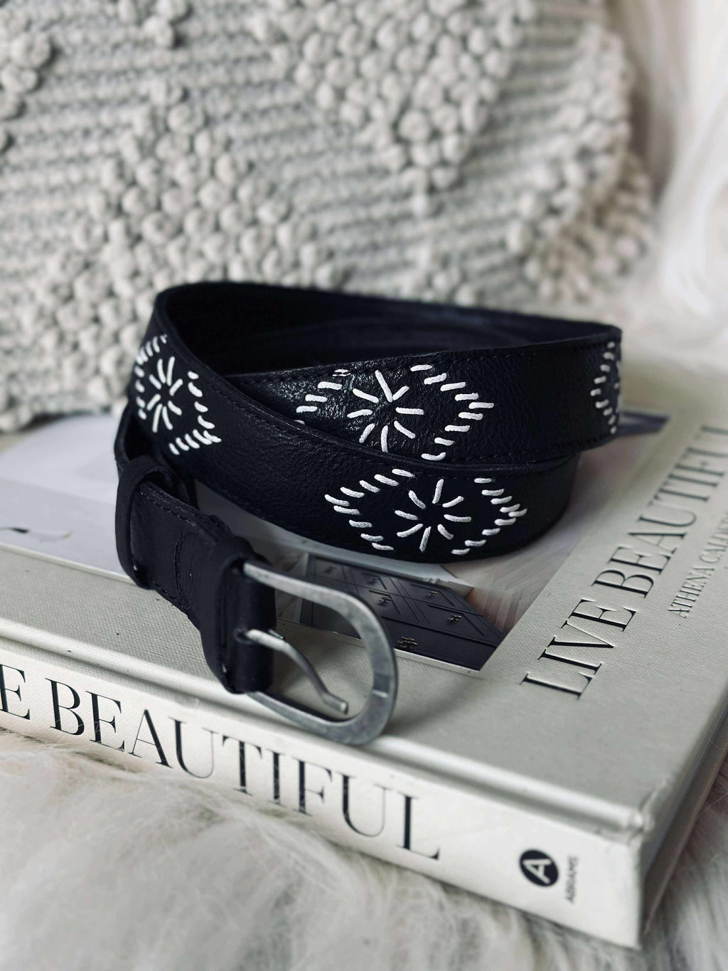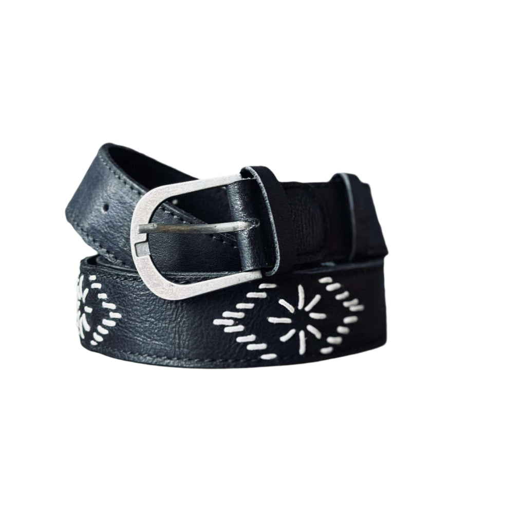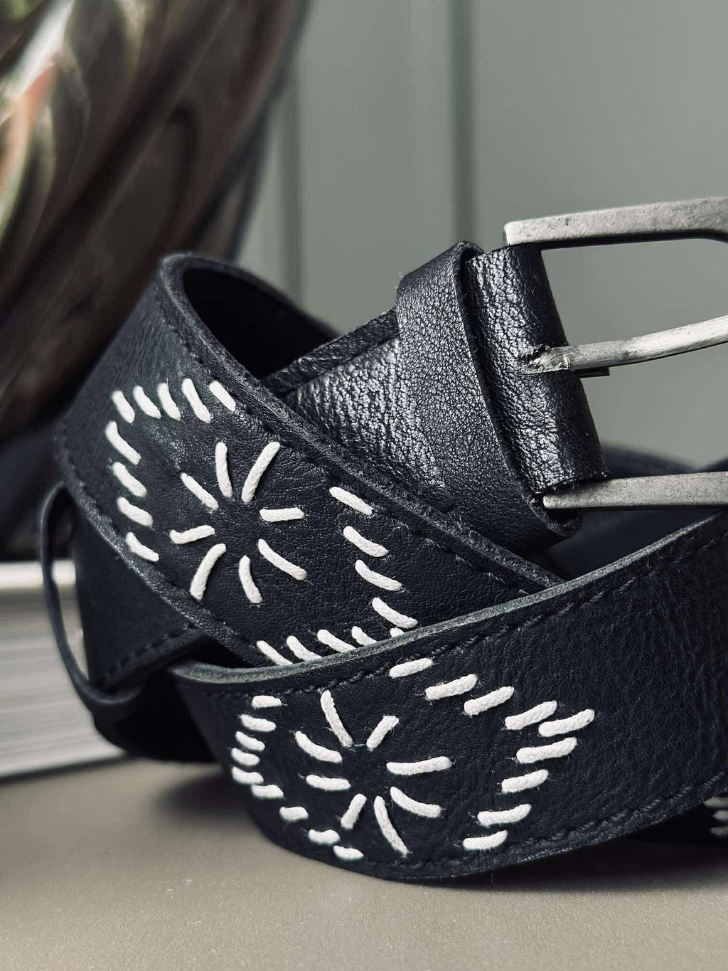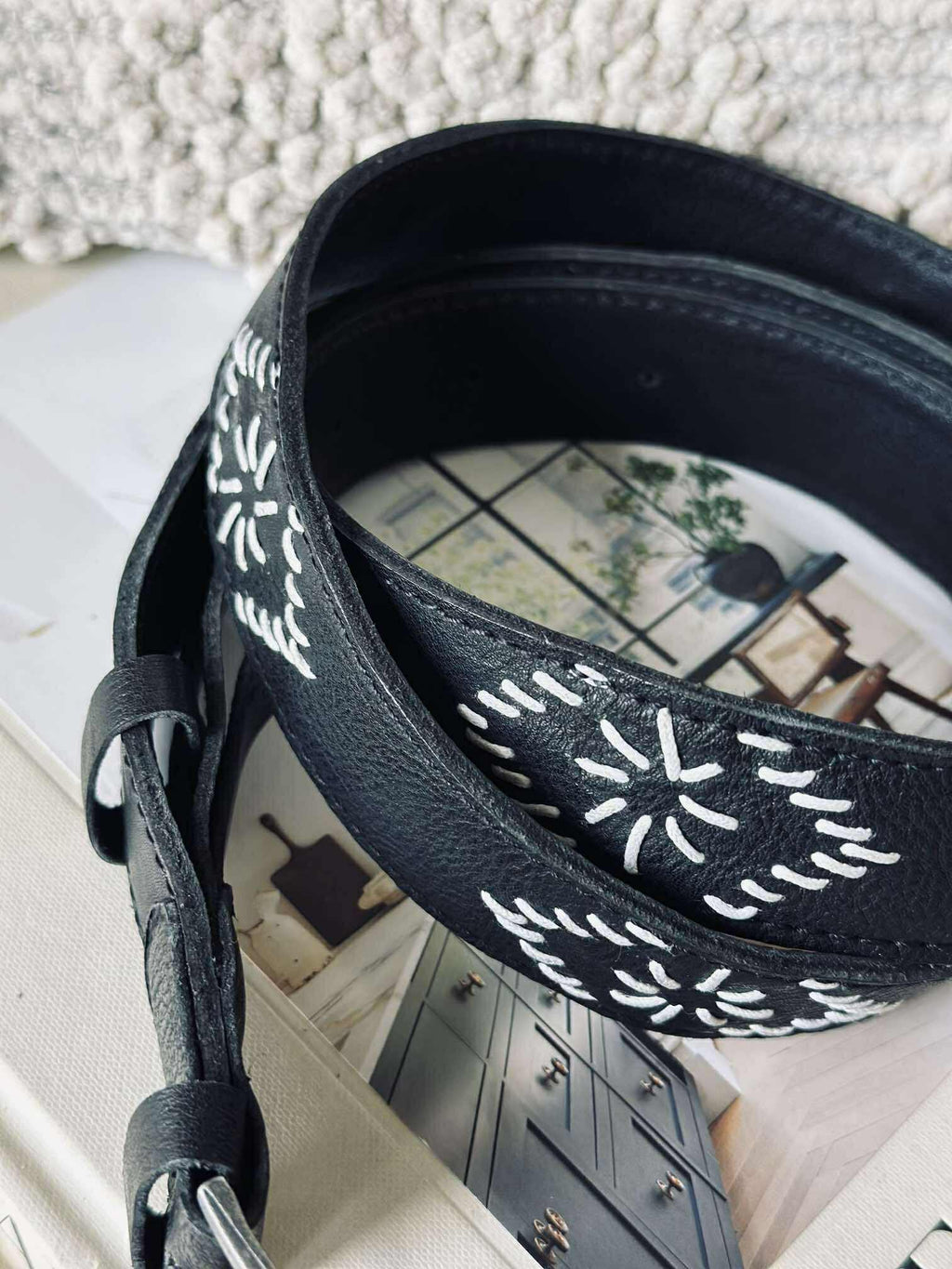StitchMark bæltet forener tidløs elegance med moderne detaljer. Fremstillet i sort læder af høj kvalitet, prydes det af en stilren sølvspænde og et hvidt kontrastsyning, der tilføjer karakter og raffinement til dit outfit. Det er det perfekte tilbehør til både hverdag og formelle anledninger.