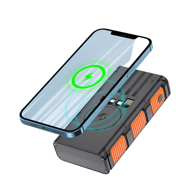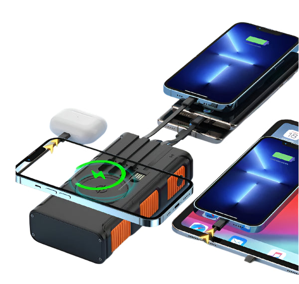 Med SunCore ved din side kan du holde dine enheder opladet, uanset om du vandrer i naturen, arbejder uden for kontoret eller bare nyder udendørslivet. Designet med et indbygget solpanel og flere output-porte giver denne bærbare powerbank dig mulighed for at være tilsluttet på en let og pladsbesparende måde.
