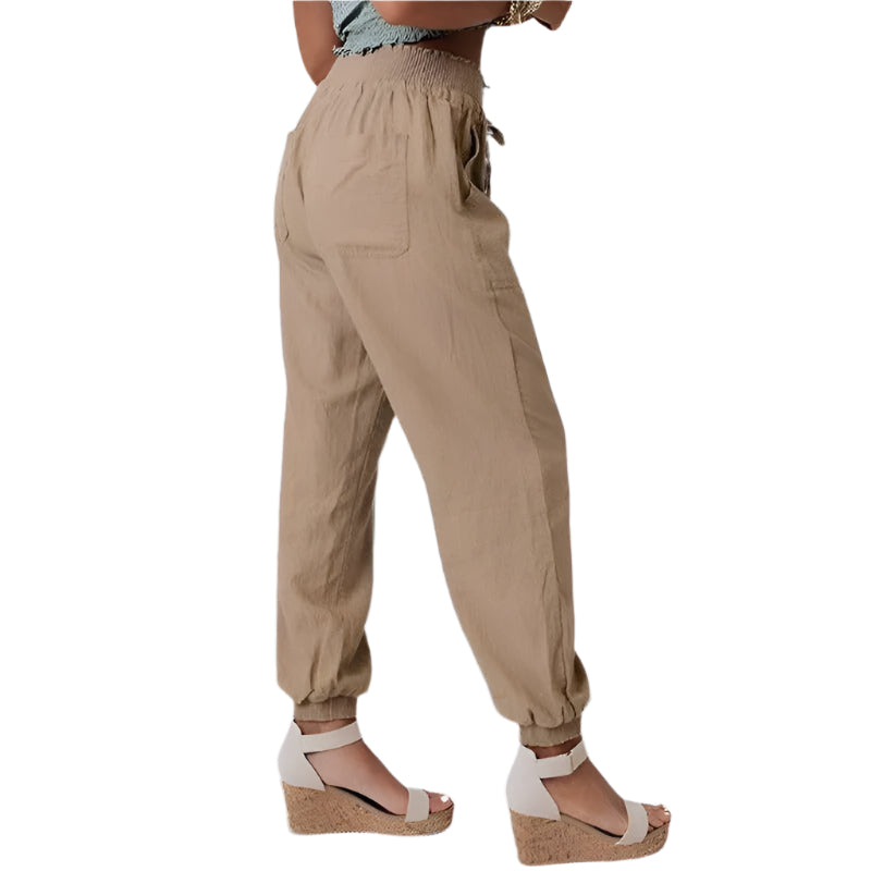 Tara er designet til dig, der ønsker komfort og funktion i ét enkelt design. Bukserne har en afslappet, let tilpasset pasform, som gør dem ideelle til både hverdagsbrug, hjemmearbejde og rejser. Den elastiske linning med snøre sikrer individuel pasform og maksimal komfort – uden at gå på kompromis med det stilrene udtryk.